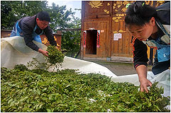 黔东南剑河县昂英村,清晨的村落雾气弥漫,把田园风光遮掩得若隐若现。太阳升起雾气散尽,逛到寨子的长廊,看到杨再华夫妇俩已在忙碌的晾晒一些树叶。……查看详细>>